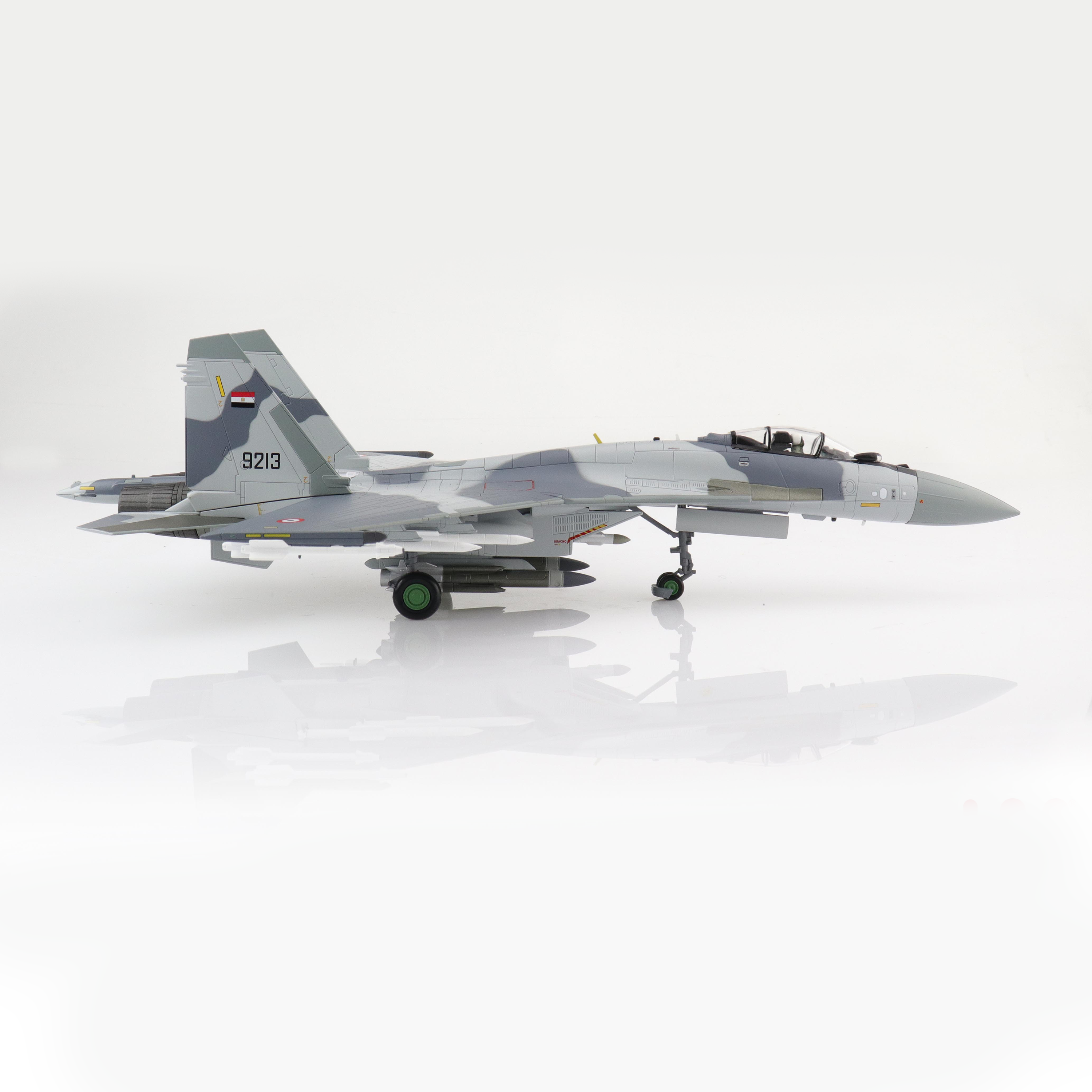 - Egyptian Air Force Markings: The model is decorated with authentic colors and markings for the Egyptian Air Force’s Su-35S #9213, as it appeared in 2020.