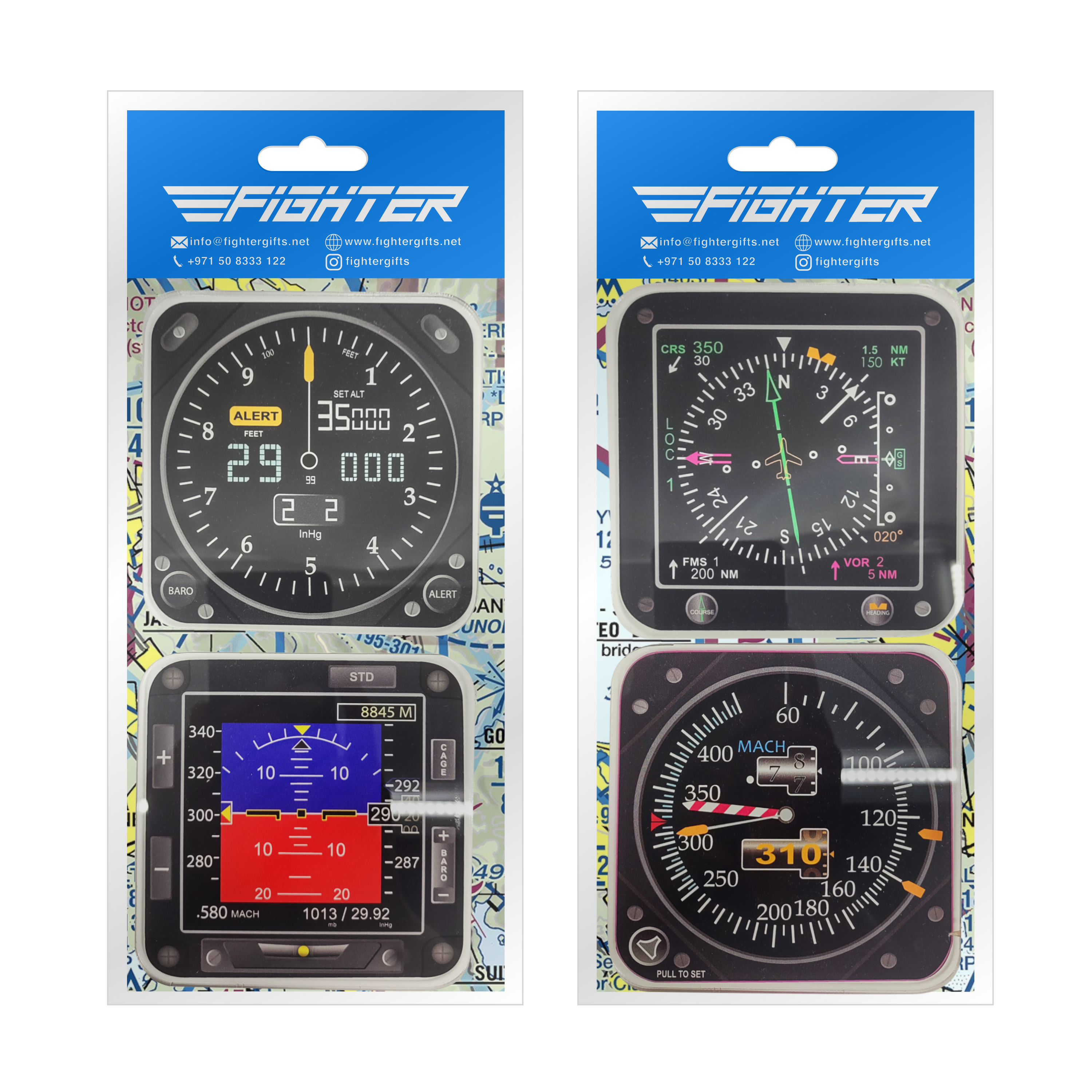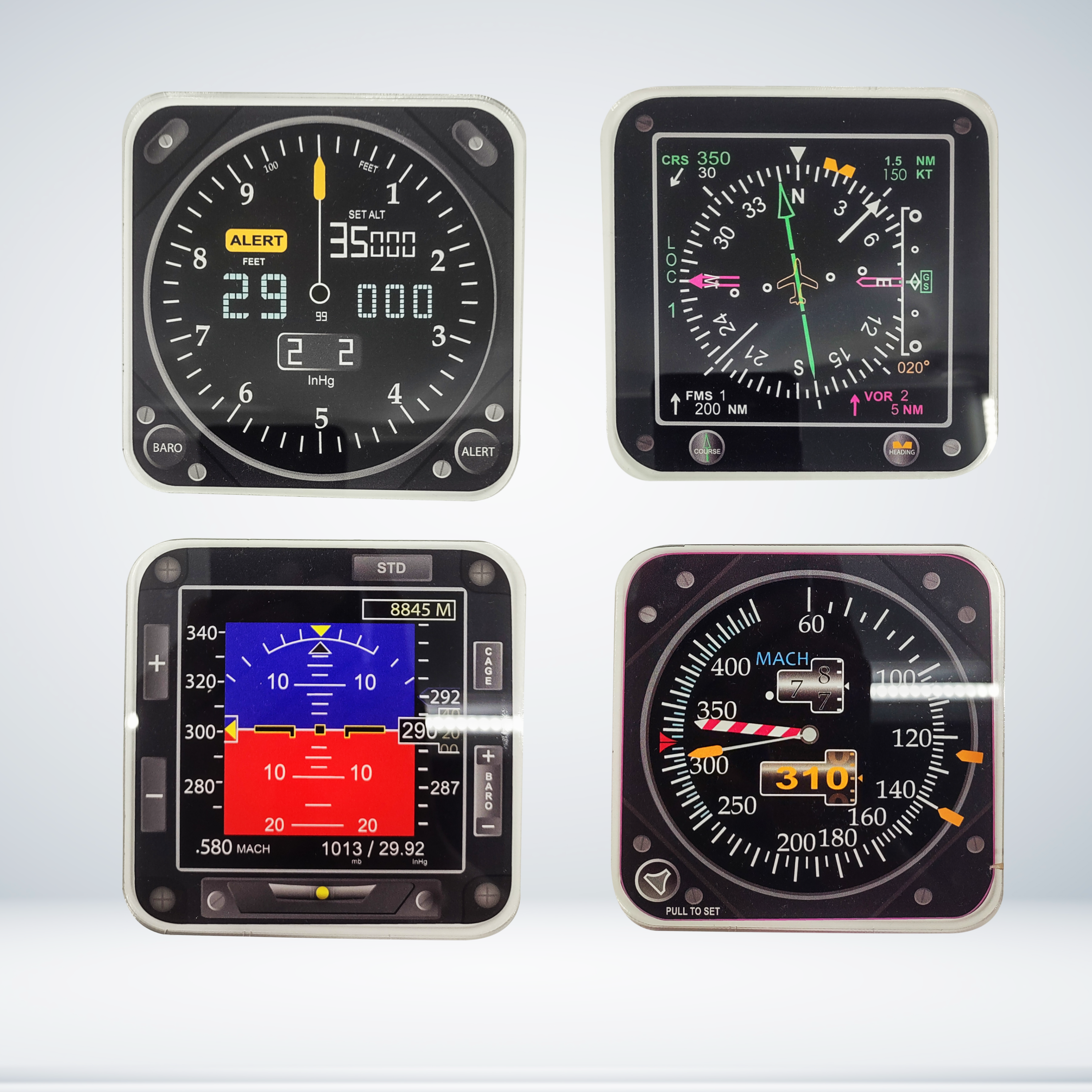 - 4 x Box-Shaped Acrylic Coasters (Airspeed Indicator, Attitude Indicator, Navigation Display, Altimeters)