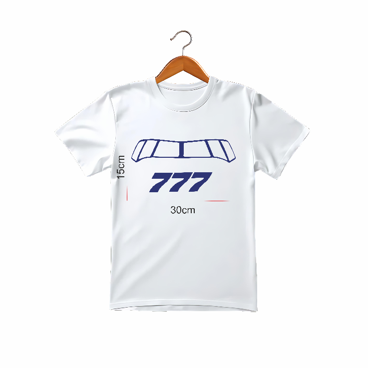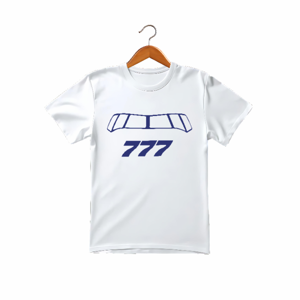 Sleek and comfortable, this white T-shirt features a detailed 777 cockpit design, perfect for aviation enthusiasts and pilots alike. A stylish way to show your love for the skies.
