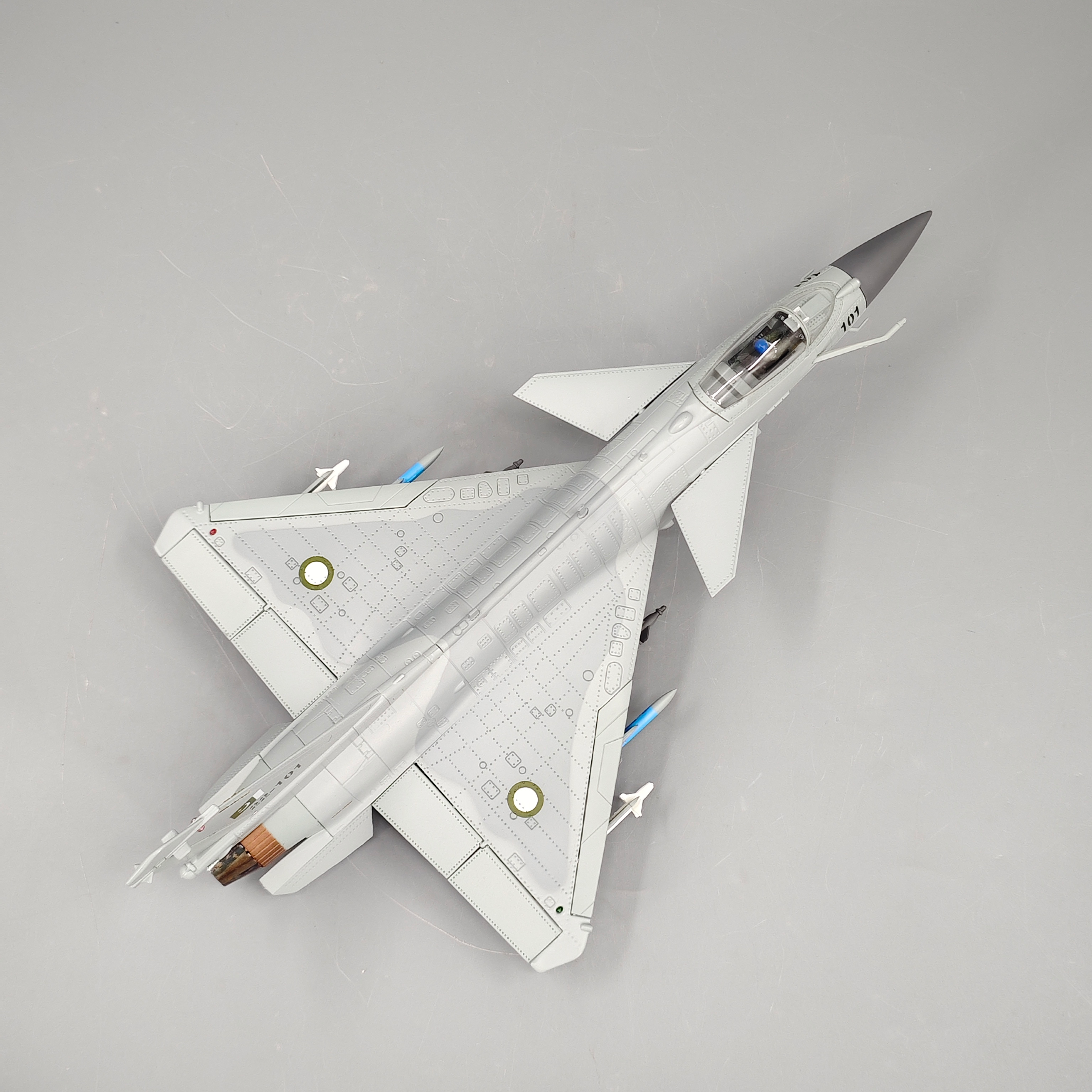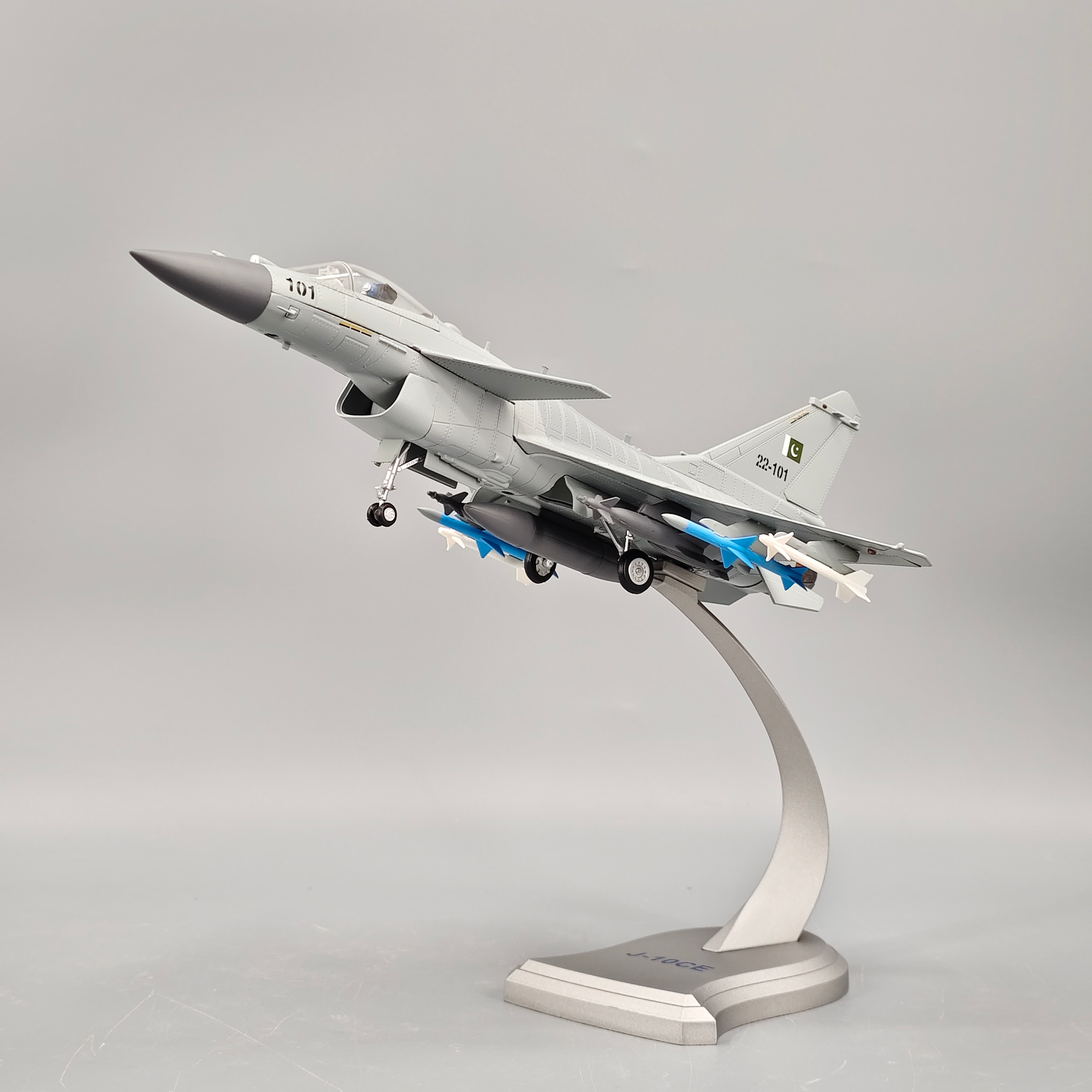 Designed for collectors and aviation enthusiasts, it includes a sturdy display stand, realistic cockpit shaping, precise weapon pylons, and smooth paint finishing that captures the sleek, agile look of the real J-10CE.
