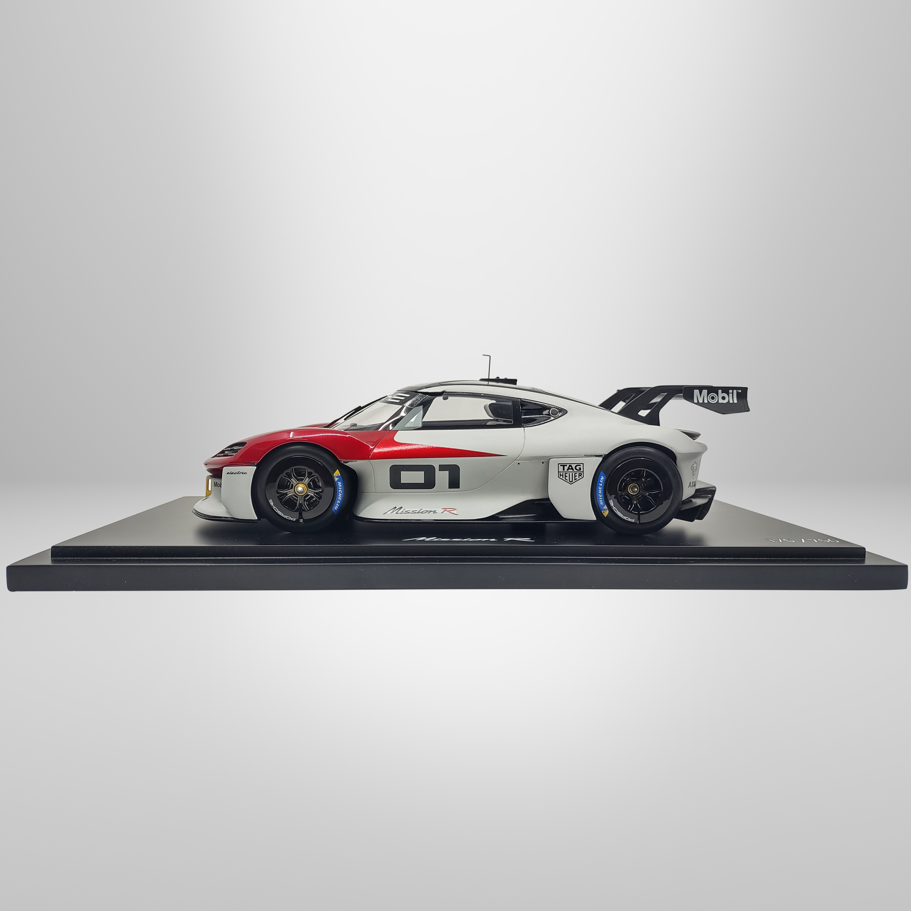 Exclusive Porsche Mission R 1:12 scale model, a remarkable collectible that deserves a place in any enthusiast’s collection. This model features an immaculate white and red exterior with a sleek black interior, showcasing exceptional attention to detail. As the 175th model out of a limited edition of 500 units, it’s a rare and valuable piece. Crafted from high-quality resin, this model perfectly captures the innovative design of the Porsche Mission R. Packaged in a stylish gift box, it’s the ideal gift for any Porsche fan.