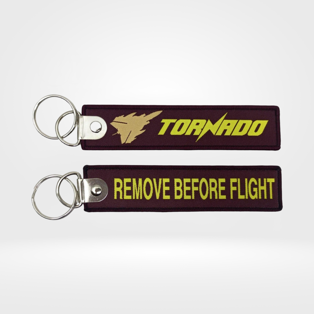 REMOVE BEFORE FLIGHT RED FABRIC KEYCHAIN