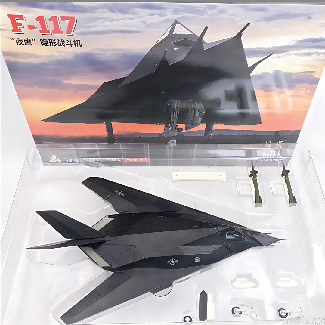 Capture the stealth and iconic shape of the legendary Lockheed Fโ117 Nighthawk in miniature form with this 1:72-scale die-cast model. Crafted by WLTK, it features a solid metal body with finely moulded detail, portraying the angular facets, sleek black finish and distinctive twin-tail profile that made the F-117 famous. The model comes complete with a display stand, making it ideal for collectors and aviation enthusiasts looking for a dynamic centerpiece for a shelf or office. Accurate to scale (~29 cm in length) and labelled for the U.S. Air Force, it’s a striking tribute to one of the first operational stealth attack aircraft.